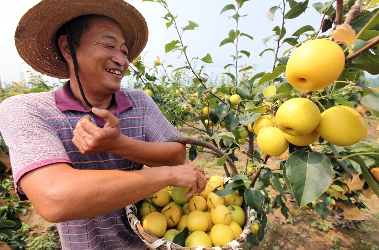 襄城縣王洛鎮張莊村村民在采摘黃金梨。(資料圖片,由本報記者牛書培提供)