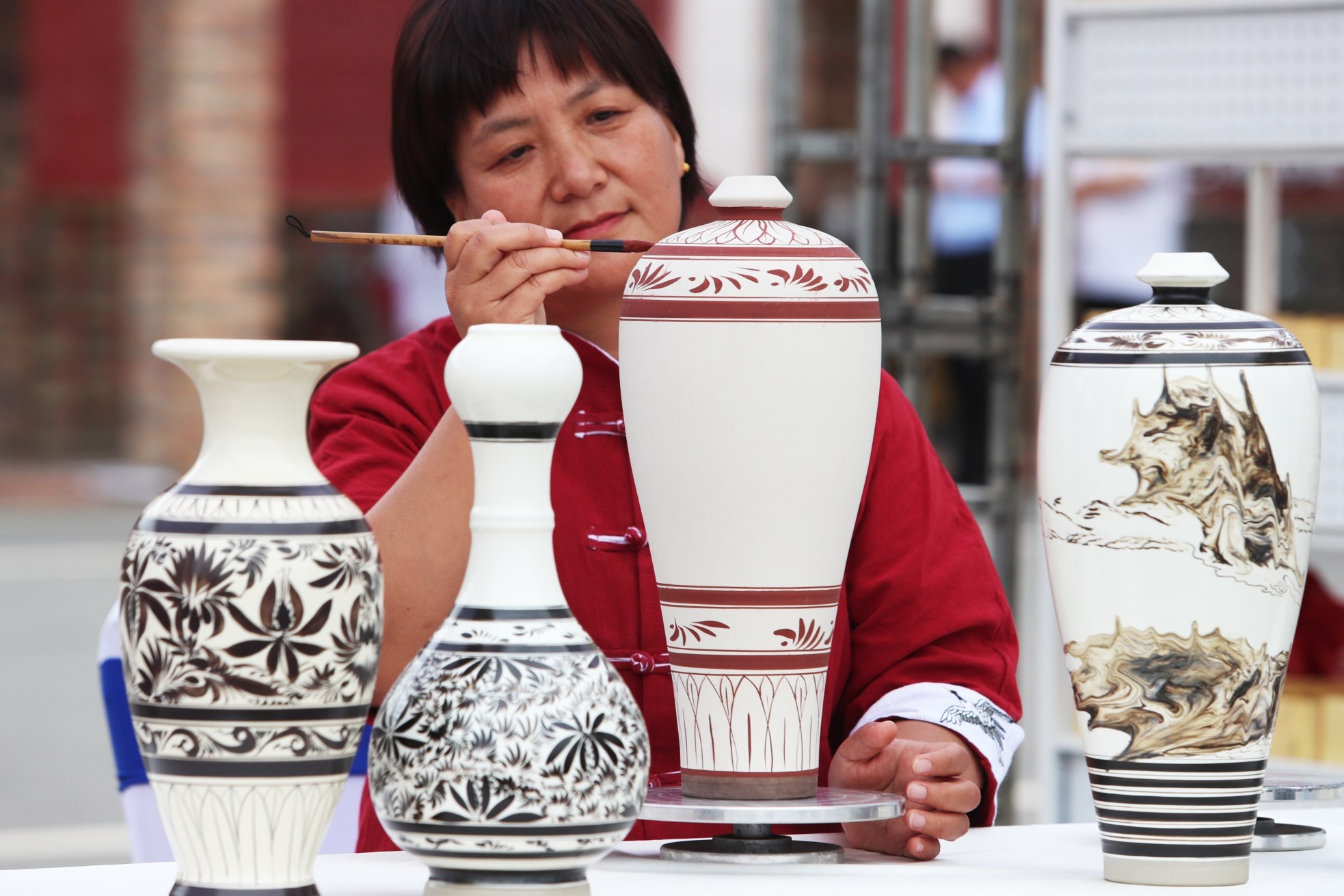 6月3日,“名師出高徒——河南唐宋名窯陶瓷燒制技藝大賽暨許昌市第五屆傳統工藝展演展示”活動在禹州市神垕鈞瓷工業文化園舉行。全省10個地市的12個省級以上陶瓷燒制技藝項目的傳承人參加了現場陶瓷手拉坯比賽,展出陶瓷作品70余件。33個非遺項目進行了現場展演展示,吸引眾多觀眾現場體驗非遺技藝,感受傳統文化魅力。