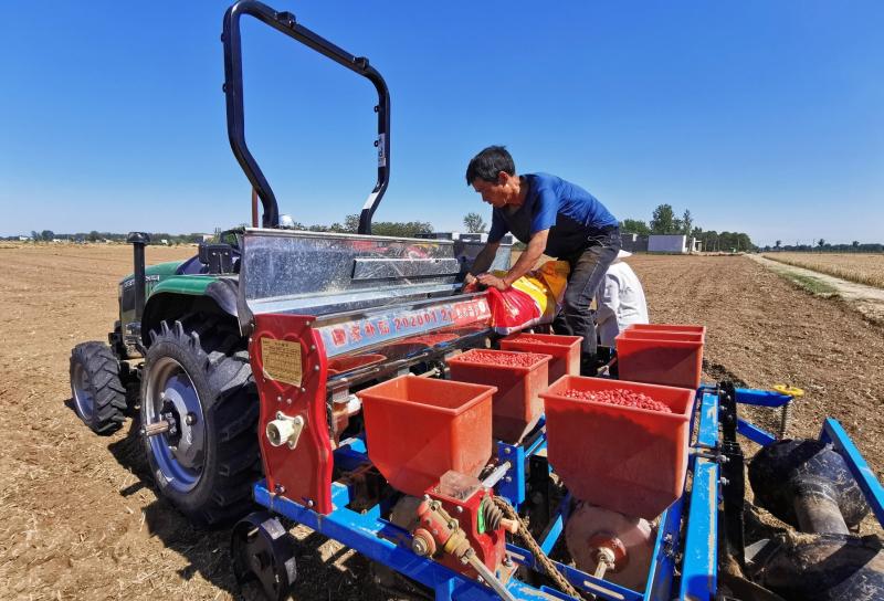 6月5日,建安區陳曹鄉西靳莊村農民正在忙著秋作物播種。當前,我市各地農民抓緊天氣晴好的有利時機搶收搶種,為秋作物豐收打下良好基礎。 本報記者 喬利峰 攝