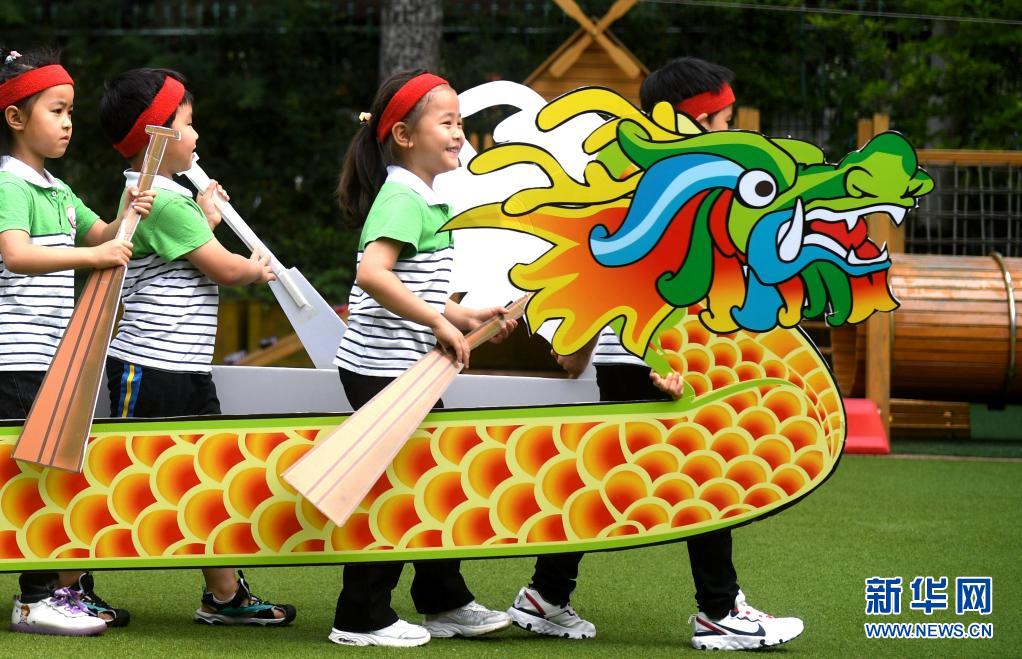 6月10日,石家莊市橋西區第三幼兒園的小朋友們在進行劃“龍舟”比賽。