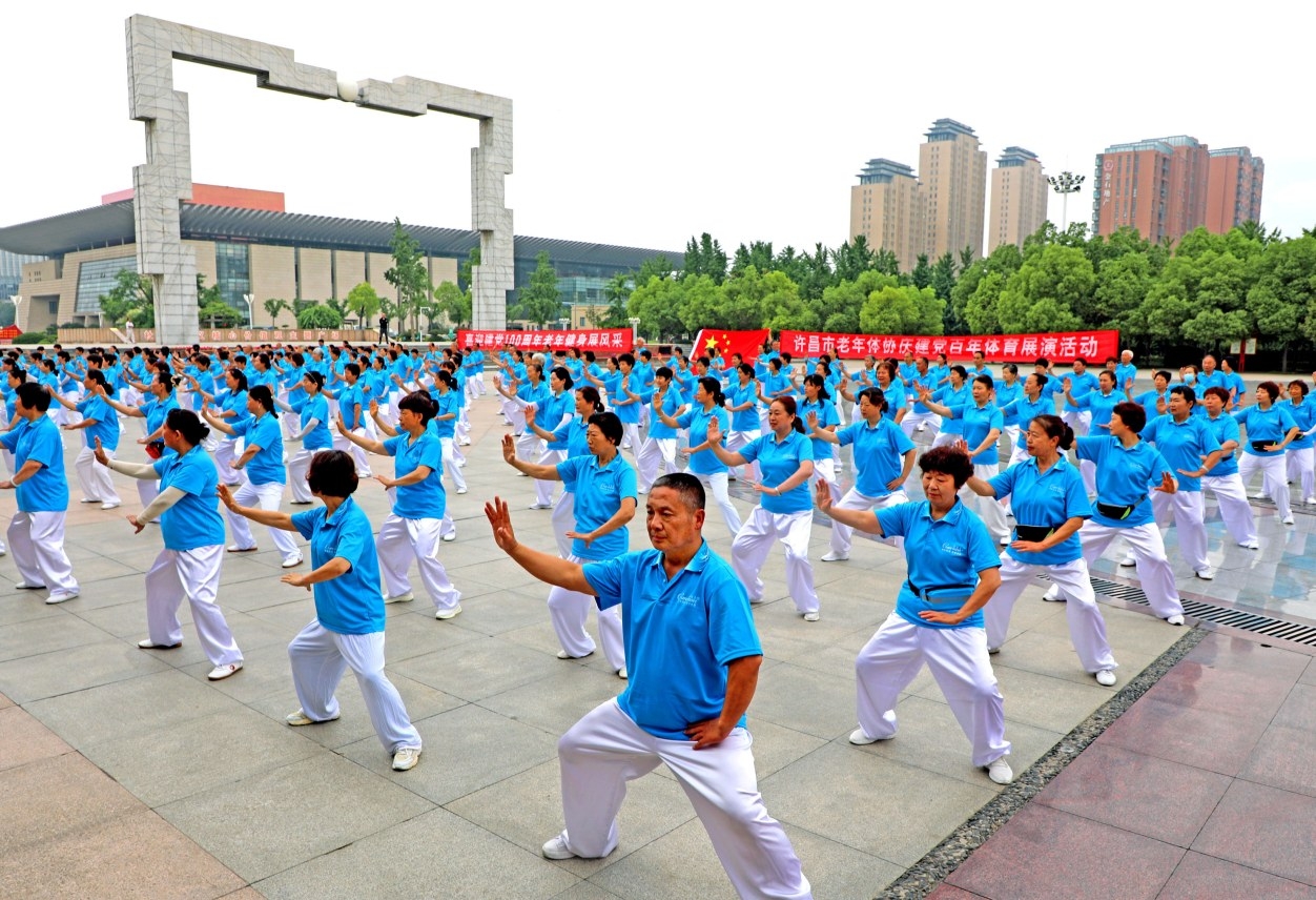 6月19日,老年太極拳愛好者在許都公園進(jìn)行陳式太極拳小架展演。 當(dāng)日,許昌市老年體育協(xié)會聯(lián)合許昌市武術(shù)協(xié)會開展以“中國共產(chǎn)黨成立100周年,深入開展黨史學(xué)習(xí)教育”為主題的太極拳展演活動。活動現(xiàn)場,來自全市各基層站點(diǎn)的老年太極拳愛好者共200余人參加展演,向建黨100周年獻(xiàn)禮。 記者 譚宜姝 攝