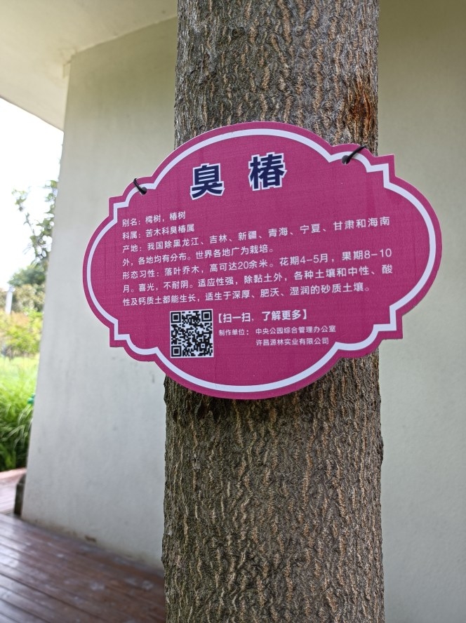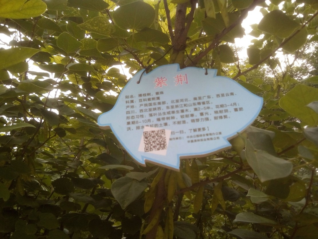 標志牌上標注著植物的學名、別名、拉丁名、科屬、形態特征等信息。這塊標志牌就是植物的“身份證”,市民只要用手機掃描上面的二維碼,就可以鏈接到《中國植物志》,獲得更加詳細的植物信息。