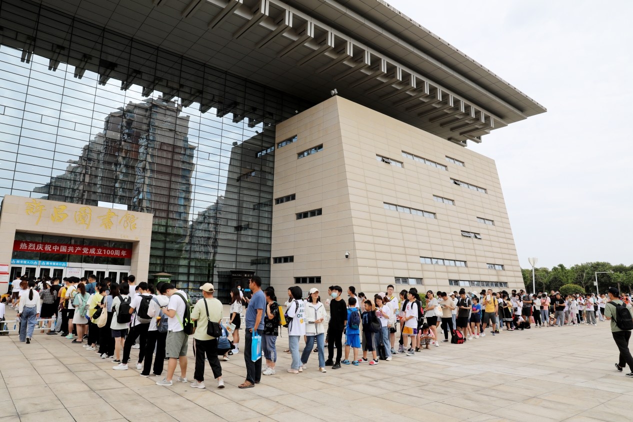 7月6日,許昌市圖書館還未開館,前來學習、閱讀的學生已排著長隊等待入館。暑期來臨,許昌市圖書館成為學生的“打卡”首選地。 本報記者 喬利峰 攝