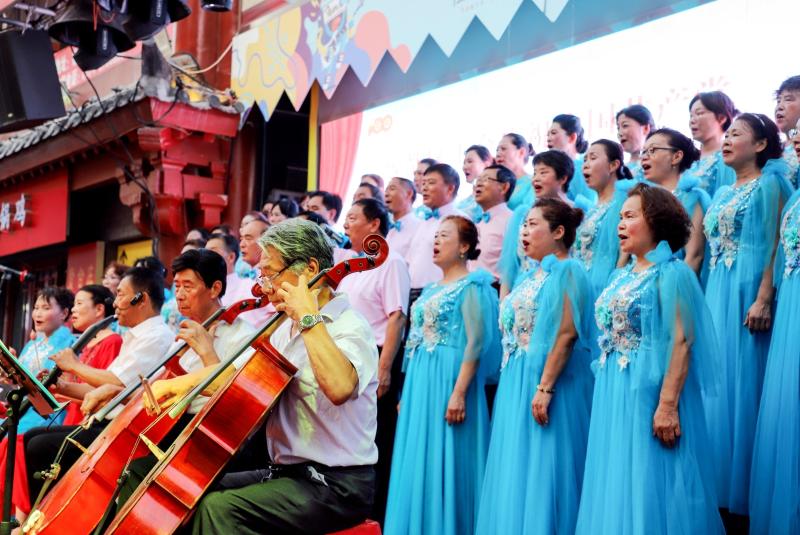 7月14日,在市區曹魏古城魏源廣場,魏都區總工會組織新時代藝術團開展“中國夢·勞動美·工會情”藝術演出活動,豐富群眾業余文化生活。 本報記者 喬利峰 攝
