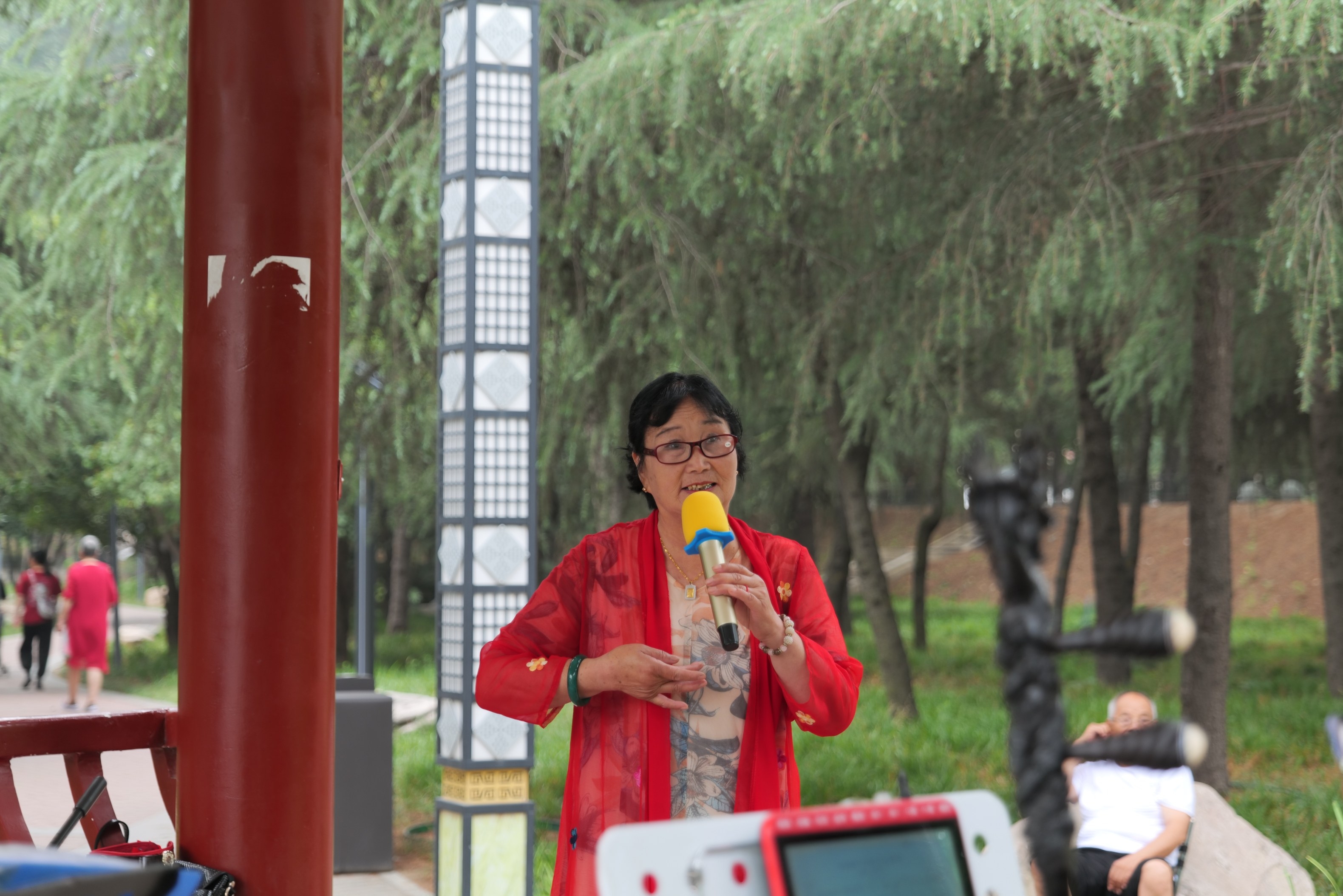 郭付連的聲音一起,便吸引了許多行人。她舉手投足間,透著溫婉的氣息。“她真像大家閨秀。”一位行人說,“不僅聲音好,肢體表演也充滿魅力。”
