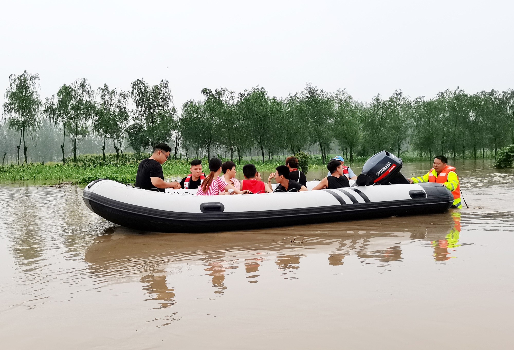 “7月20日,我們兵分兩路,一路有16人攜帶兩艘沖鋒舟,到鄢陵縣彭店鎮執行防洪泄洪救援任務;一路6人駕駛越野車,攜帶沖鋒舟奔赴鄭州參加救援。”7月22日,許昌市漢風應急救援隊隊長高煜對記者說,排除鄢陵的險情后,他們把隊伍轉移到長葛市大周鎮雙洎河流域,與長葛市紅十字藍天救援隊隊員一起,利用沖鋒舟和橡膠艇,營救被困在夏張村、魏莊的群眾。