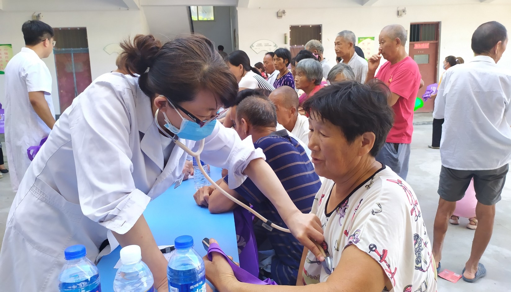 7月25日,許昌市人民醫院的志愿者們來到鄢陵縣張橋一中安置點,為安置點群眾進行診治。 康克萍 攝