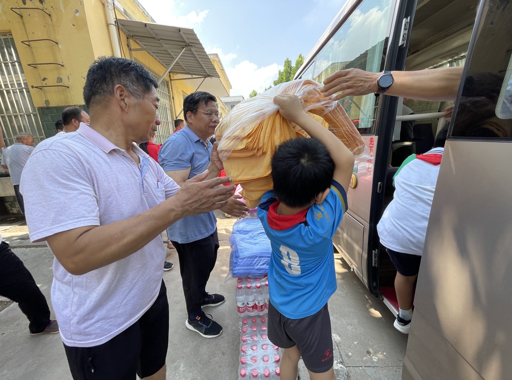 許昌市毓秀路小學二(3)班的孩子們捐出壓歲錢、零花錢購買面包、火腿腸、毛巾等生活用品,并于7月24日送到鄢陵縣馬坊鎮受災群眾安置點。 李原 攝