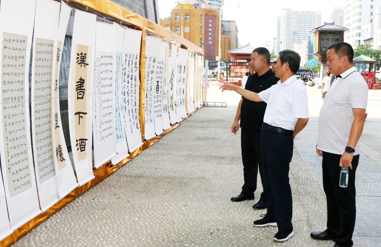 為塑造“漢醬酒”在許昌市場的品牌形象,借助書畫藝術形式,傳遞社會正能量,許昌報業傳媒集團與貴州茅臺醬香酒營銷有限公司于7月中旬啟動“漢醬杯”許昌首屆全民書畫大賽。大賽獲得書畫愛好者的積極響應,一周多時間,收到作品數百幅。 經過嚴格評審,百余幅挑選出的書畫作品在市區曹魏古城南城門進行展示,吸引了眾多市民圍觀。