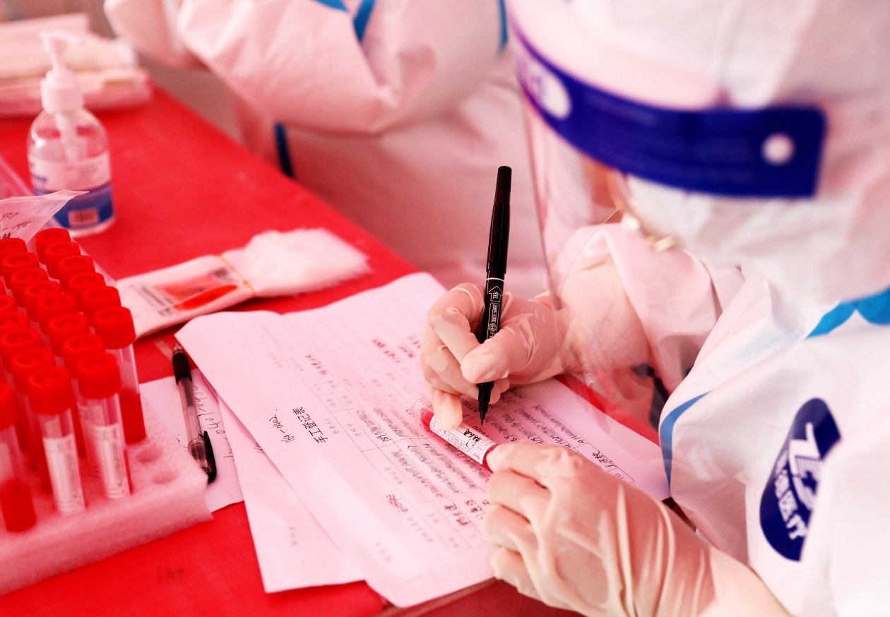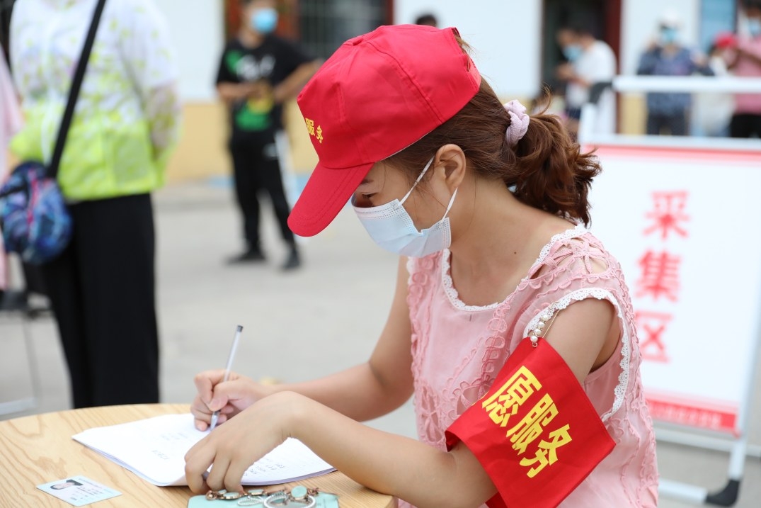 8月7日,醫務人員對核酸檢測采樣認真登記。