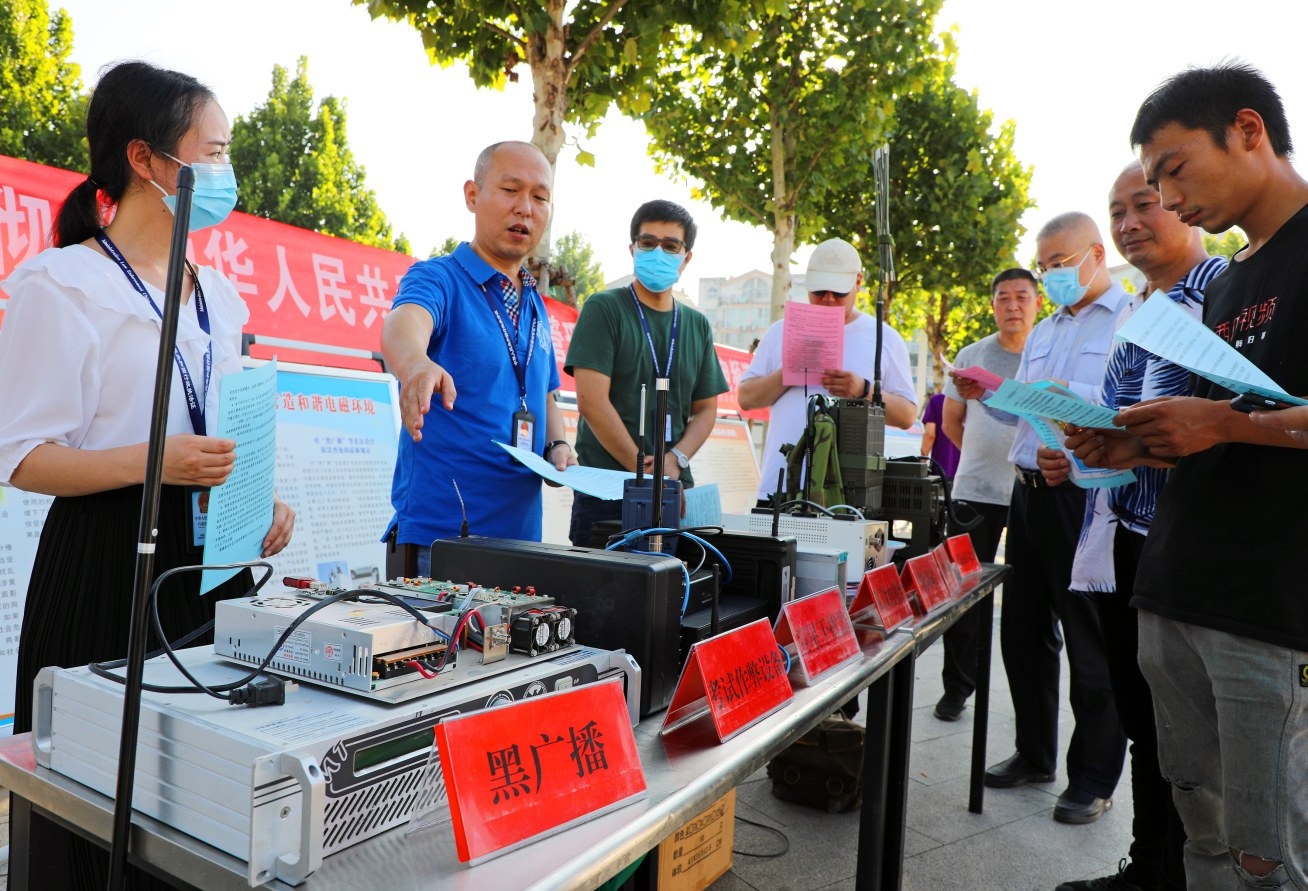 9月10日,在市區文峰廣場,許昌無線電管理局工作人員擺放無線電宣傳展板,與群眾“零距離”互動。當日,許昌無線電管理局組織開展的“無線電管理宣傳月”活動正式啟動。通過該活動,有助于群眾形成自覺維護空中電波秩序、自覺遵守無線電管理法律法規的社會風尚。 本報記者 譚宜姝 攝