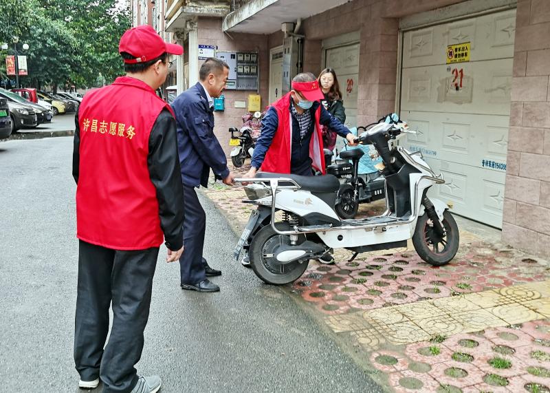 隨后,記者來到魏都區西大街道辦事處魏武社區的一個老庭院,看到社區黨支部書記李靜正帶領幾名工作人員清理樓道內的小廣告和雜物,捆扎外露的電線,提醒居民及時給電動車安裝車牌,規劃電動車停車位,滿足居民停車需求。