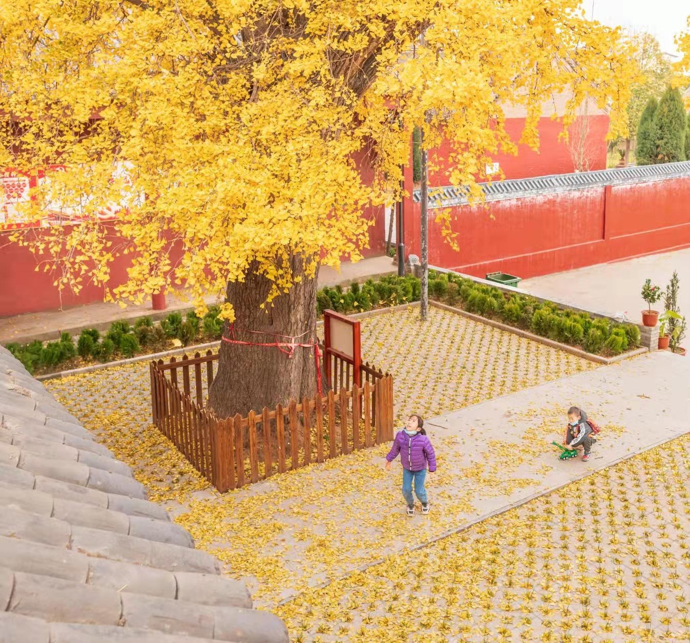 11月23日,襄城縣乾明寺千年銀杏樹滿樹金黃,令人嘆為觀止。該樹被當地人稱之為“乾根”,樹齡已一千多年,是襄城縣十大古樹之一。每到初冬時節,滿樹金黃與寺院的古樸交相輝映,吸引眾多游客前來觀賞。 簽約攝影師 劉喜芳 攝