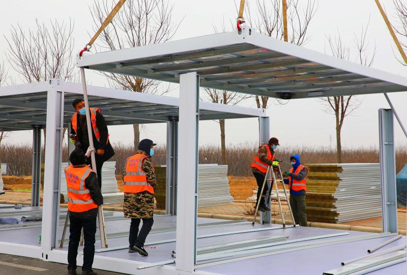 工人在搭建隔離板房。 本報記者 譚宜姝 攝