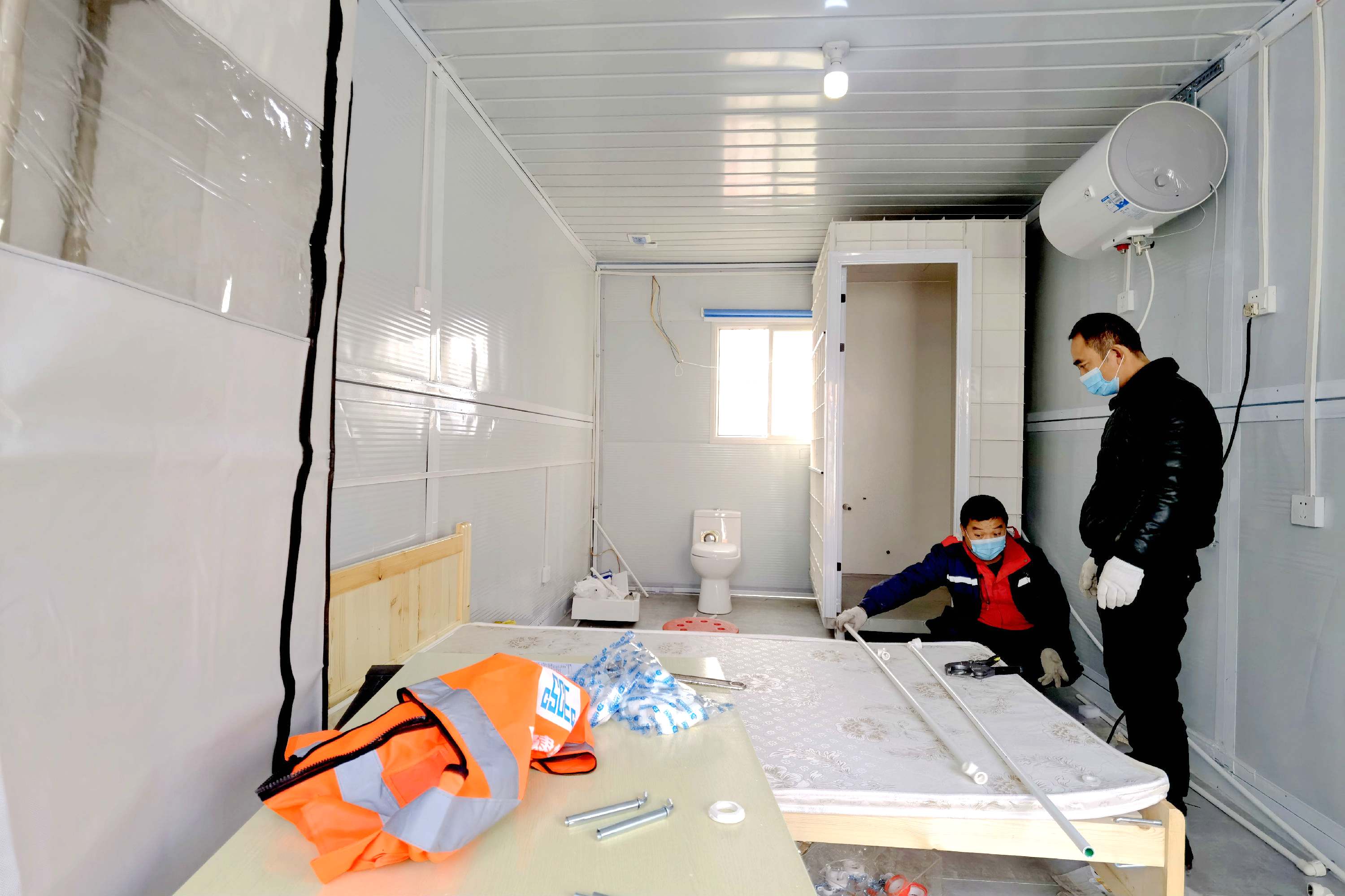 1月16日,在由中鐵七局承建的集中隔離點施工現場,工人正在精心施工。 簽約攝影師 孫玉明 攝