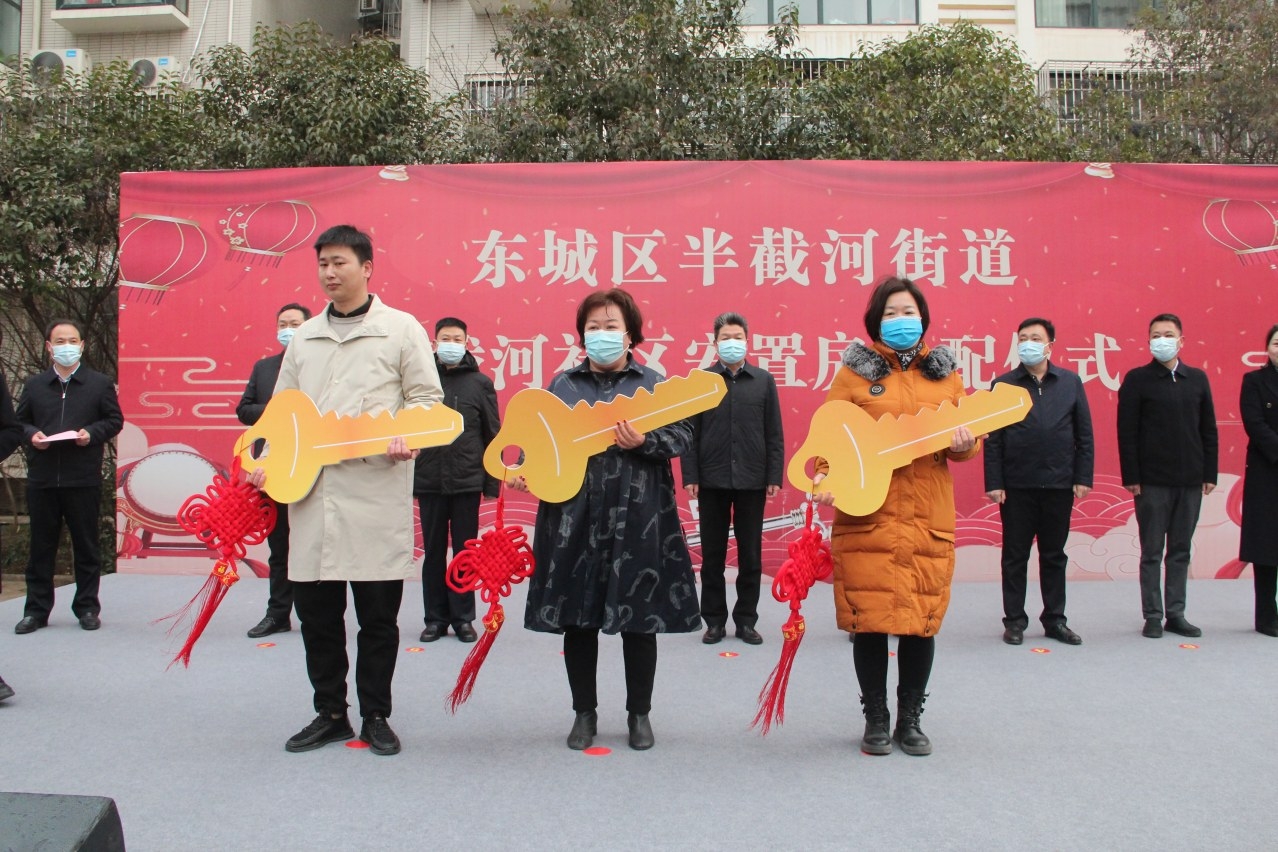 當天上午,東城區半截河街道辦事處半截河社區安置房分配交房儀式在沈莊小區舉行。在安置房分配交房儀式上,東城區黨工委書記李成向半截河社區回遷安置群眾代表授付象征房屋的“金鑰匙”。“新房子咋裝修都想好了,非常激動,感謝政府給我們辦成了一件好事、實事。”回遷安置群眾代表沈女士滿面笑容地說。