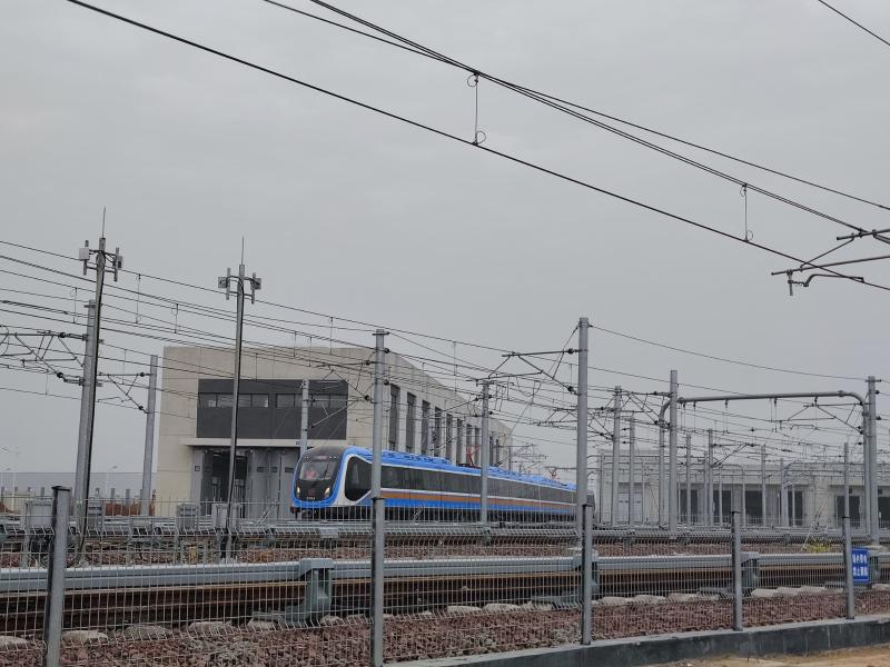 3月16日上午,鄭許市域鐵路梅莊停車場內的列車正式進行熱滑測試。 朱書辰 攝