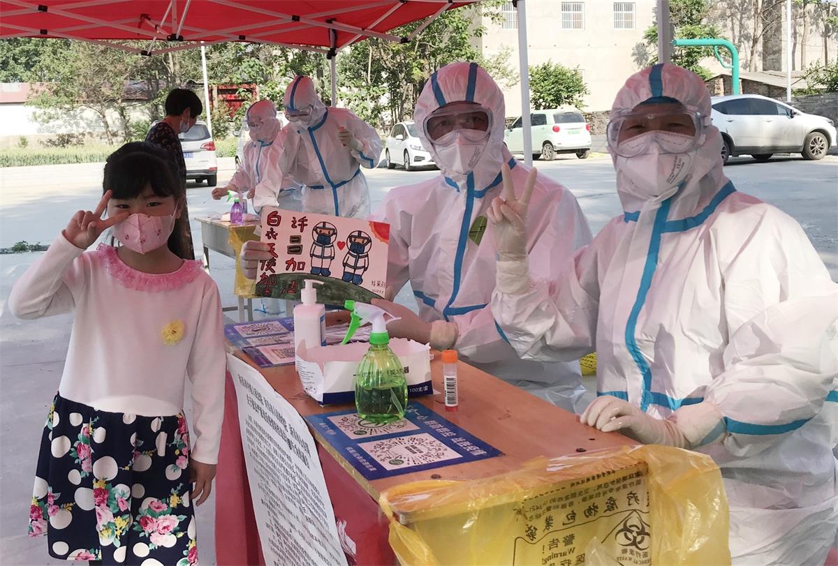5月8日上午,許昌市建安醫(yī)院七里店社區(qū)衛(wèi)生服務(wù)中心的醫(yī)護人員在孫廟社區(qū)為全體居民做完核酸檢測后,該社區(qū)的小學(xué)生孫榮艷將一幅自己創(chuàng)作的蠟筆畫送給了醫(yī)護人員。 簽約攝影師 李保利 攝