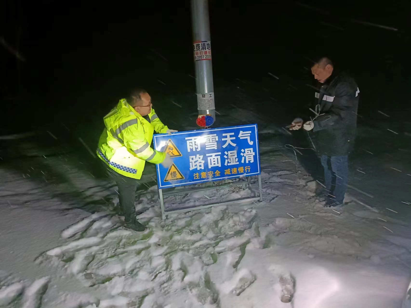 建安區(qū)交通運(yùn)輸局農(nóng)村公路管理所在小年夜(1月14日)組織應(yīng)急隊(duì)伍,按照雨雪冰凍災(zāi)害預(yù)案,采取了人工除雪,撒融雪劑等措施,確保道路暢通;在陡坡路段,還設(shè)置了標(biāo)志標(biāo)牌,提醒過往車輛請,注意安全,減速慢行,確保了廣大人民群眾出行安全。(李丹)