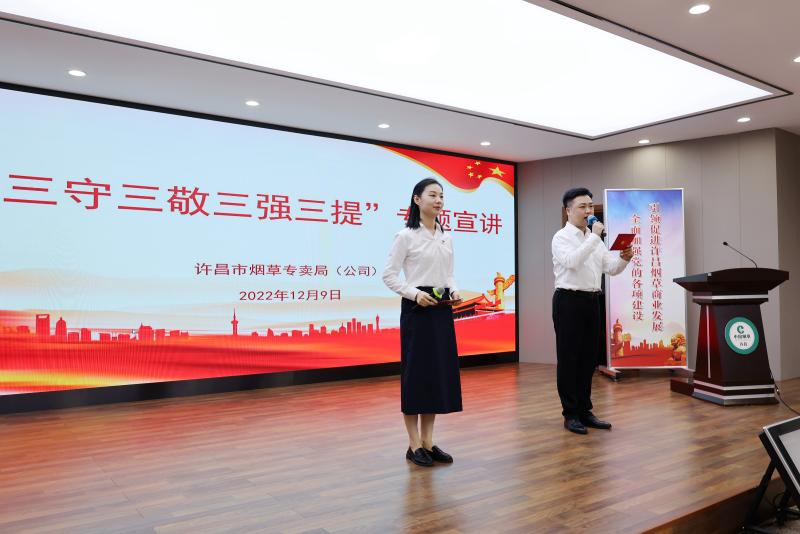 許昌市局(公司)創(chuàng)新提出“三守三敬三強三提”工作理念,即:堅守初心、篤守虛心、嚴守誠心,敬重組織、敬愛崗位、敬畏規(guī)矩,增強創(chuàng)新力、增強執(zhí)行力、增強凝聚力,提高素質、提升效率、提增效能,圍繞上述要求,通過“許煙講堂”等多種形式,開展一系列學習討論和宣傳教育活動,推動干部職工強化思想淬煉、站穩(wěn)政治立場、理清工作思路,為勇當全省煙草商業(yè)系統(tǒng)高質量發(fā)展先鋒奠定思想基礎。