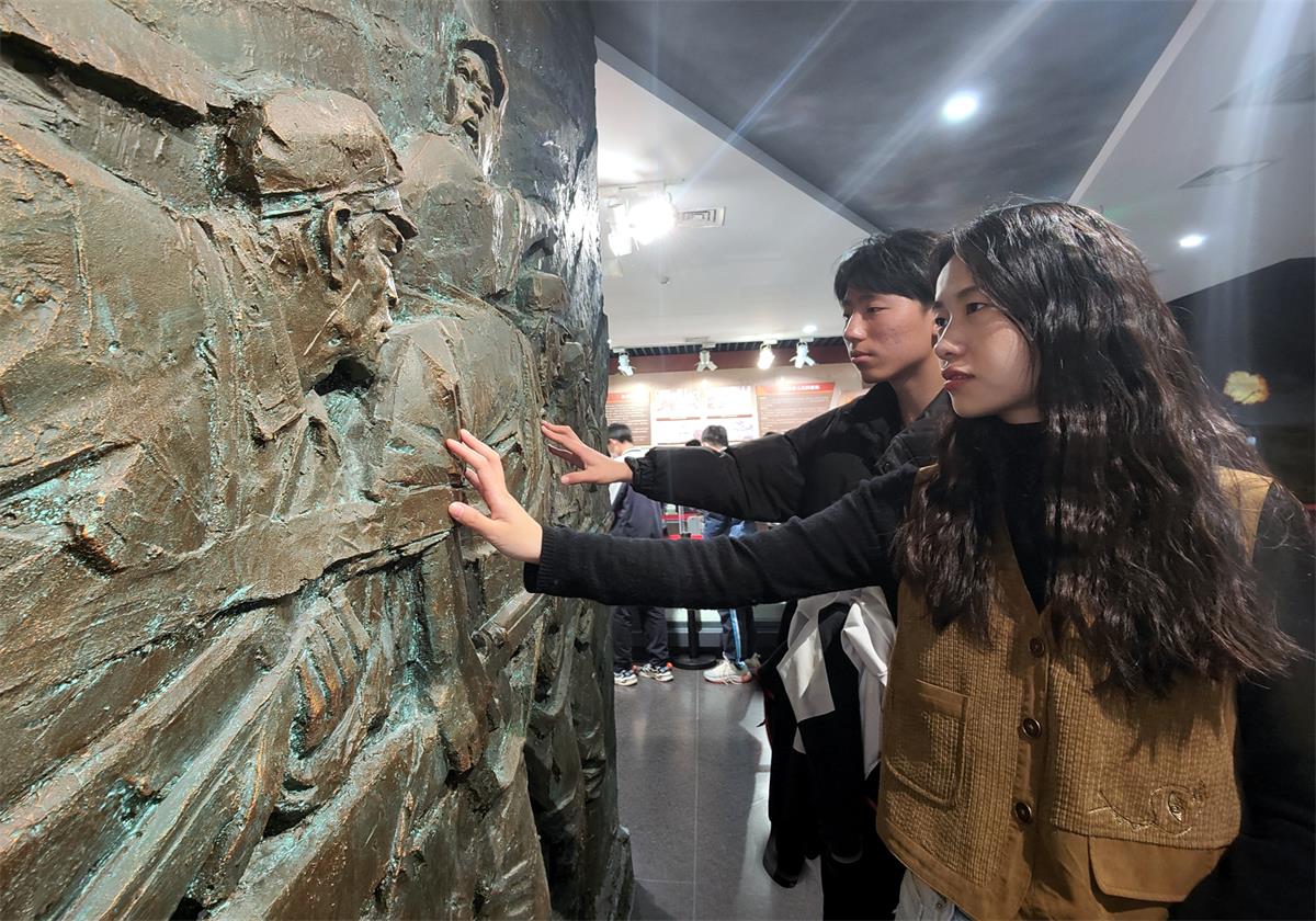3月22日,在許昌烈士陵園革命烈士紀(jì)念館,兩位年輕人在館內(nèi)參觀。隨著清明節(jié)臨近,我市一些團(tuán)體或個(gè)人,紛紛來到許昌烈士陵園祭掃烈士墓,參觀烈士紀(jì)念館,以各種方式緬懷老一輩革命志士的豐功偉績。 記者 黃增瑞 攝