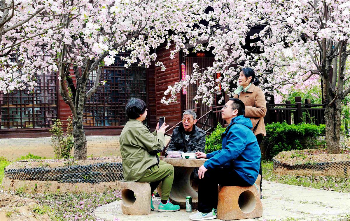 3月26日,4位來自河北省的游客在鄢陵縣花木園區觀光。近年來,鄢陵縣堅持高質量發展花木產業,走出了一條“以花木改善生態、以生態承載旅游、以旅游引領康養”的轉型升級之路。 本報記者 呂超峰 攝