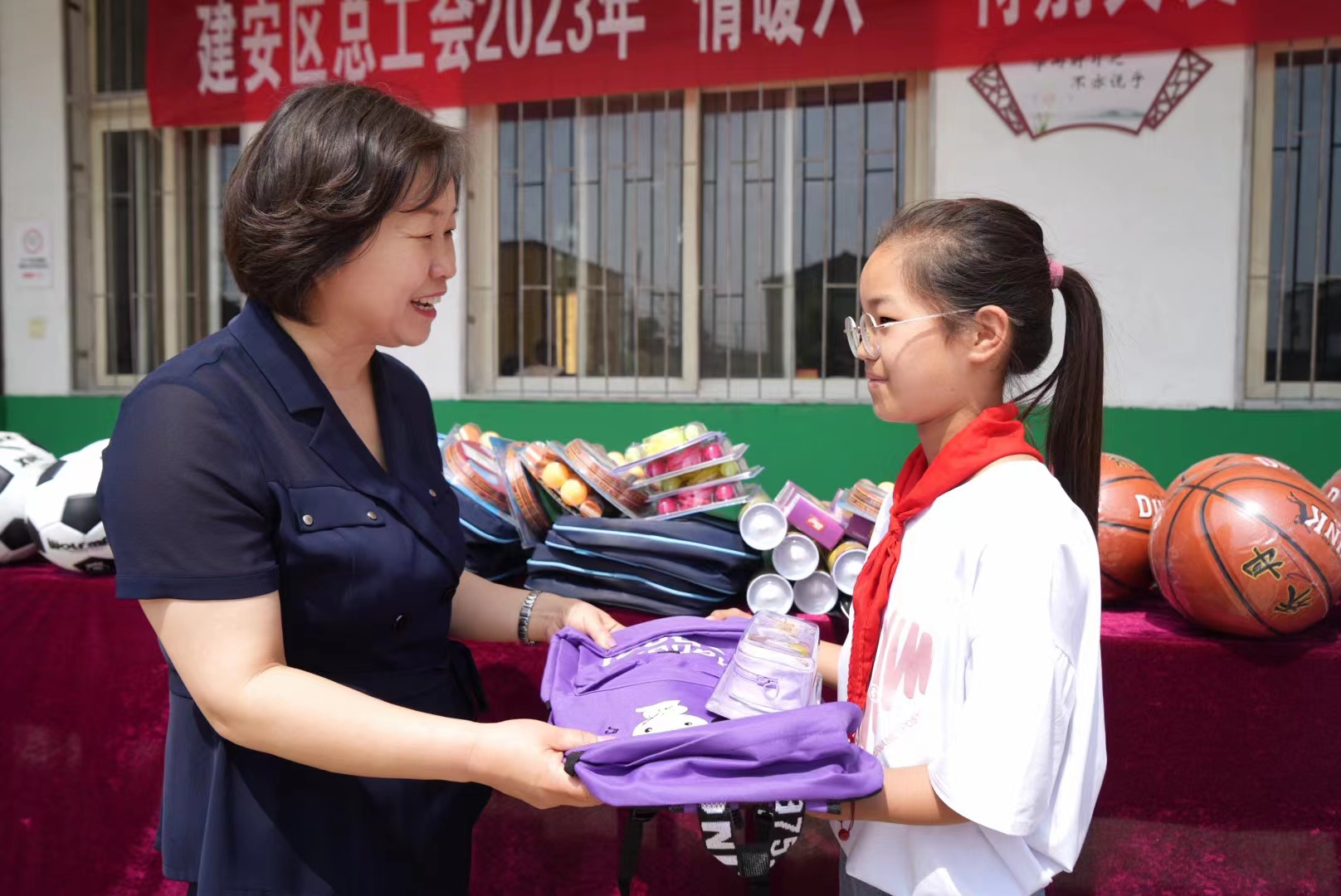 活動中,建安區總工會黨組書記、常務副主席羅紅舉分別為兩個學校的留守兒童和困境兒童送去了10000元生活救助金以及書籍、書包、籃球等慰問品。建安區總工會負責人每到一處都會與同學們親切交流,詢問他們的生活和學習情況,并鼓勵同學們要從小樹立遠大理想,刻苦學習,自強不息,努力成長為中國特色社會主義事業的建設者和接班人。
