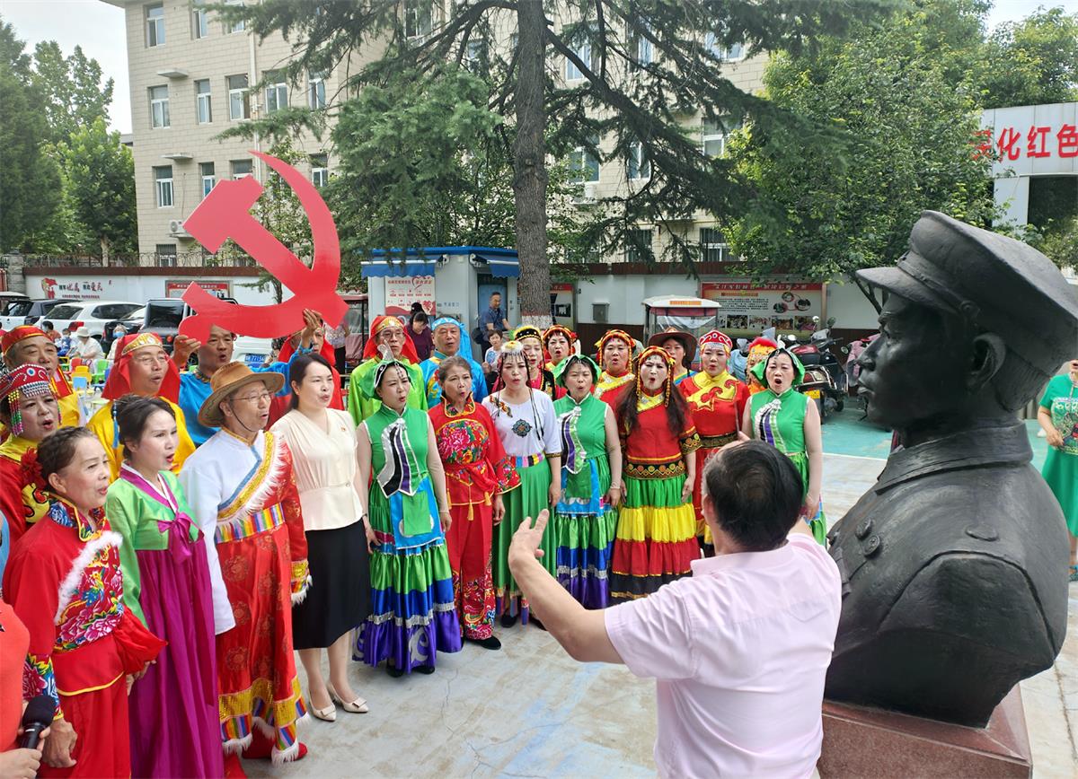 6月28日,楊根思雙擁社區,大家在特級英雄楊根思塑像前合唱《英雄贊歌》。當日,為迎接建黨102周年,激發廣大黨員干部群眾的愛黨愛國熱情,楊根思雙擁社區組織人員,用深情的歌聲、動人的旋律詮釋了對黨的無限忠誠、對祖國的無限熱愛。 黃增瑞 攝