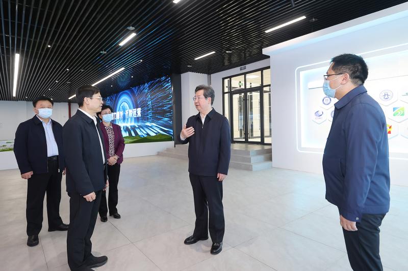 揭牌儀式后,樓陽生等察看堯山實驗室展廳和規劃沙盤,了解實驗室及白龜湖科創新城規劃建設情況。