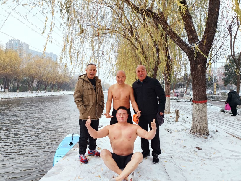 當(dāng)日清晨,在東城區(qū)飲馬河畔的許昌市冬泳協(xié)會(huì)飲馬河冬泳俱樂(lè)部,泳友們陸陸續(xù)續(xù)地趕來(lái)冬泳。雪中的飲馬河顯得比平時(shí)靜謐一些,岸邊皚皚白雪覆蓋著大地,更添幾分寒意。冬泳愛(ài)好者們卻毫不畏懼,一番熱身運(yùn)動(dòng)之后,相繼跳入飲馬河“劈波斬浪”。“舒服!得勁兒!”出水后,有的人還會(huì)大喊幾聲。