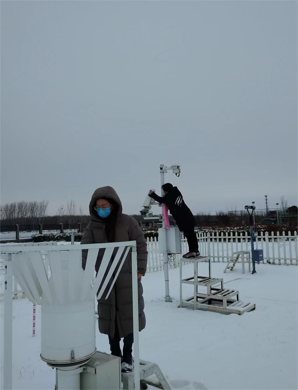業務人員對百葉箱、稱重式雨量傳感器以及天氣現象視頻智能觀測儀等進行清潔擦拭與維護,對存在的隱患及時排查,以確保觀測數據傳輸及時、準確,為暴雪天氣預報預警服務提供可靠保障。