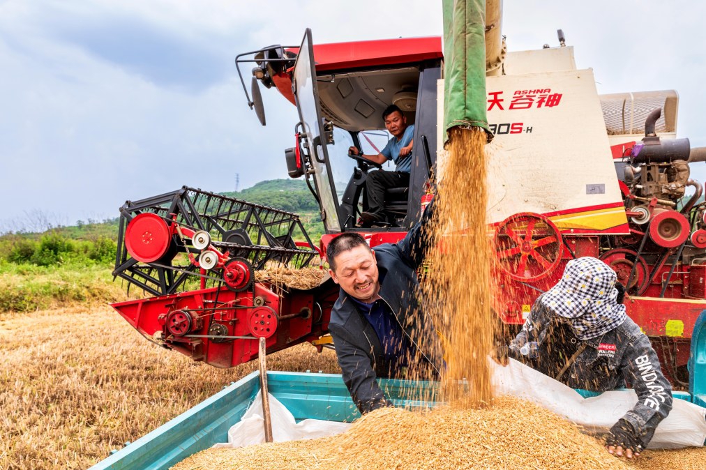 過去,播種、收獲、晾曬,都是靠農(nóng)民面朝黃土背朝天辛苦勞作。如今,每天不斷刷新的麥?zhǔn)者M(jìn)度背后,是各式農(nóng)機(jī)在大展身手。大型收割機(jī)馬力大、效率高,一天能收上百畝地;履帶式收割機(jī)更靈活,地塊小、有積水、濕度大等情況,都能派上大用場;智能收割機(jī)不僅降低小麥拋撒率和破損率,還能讓籽粒清潔度達(dá)到高品質(zhì)……在一塊塊麥田里,各類農(nóng)機(jī)“大展身手”,為顆粒歸倉提供堅(jiān)實(shí)支撐。