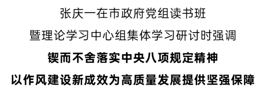 近日,市政府黨組采取集中自學和交流研討相結合的方式,舉辦深入貫徹中央八項規定精神學習教育讀書班暨理論學習中心組集體學習研討。市委副書記、市長、市政府黨組書記張慶一主持并講話,強調要深入學習領會習近平總書記關于加強黨的作風建設的重要論述,全面學習貫徹中央八項規定及其實施細則精神,推進作風建設常態長效,為推動實現“兩融五城四躍升”提供堅強保障。