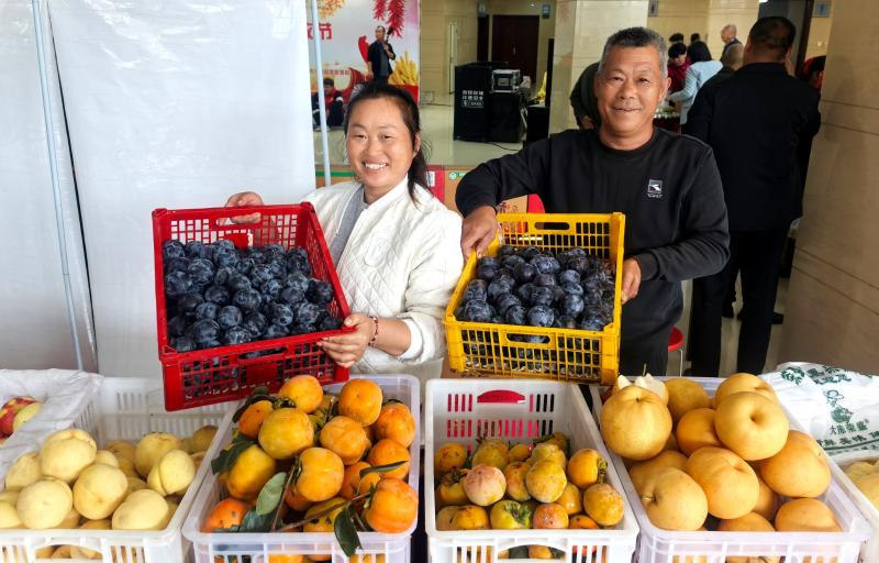 活動中,來自禹州市朱閣鎮(zhèn)大陳村的商戶展示自家種的水果。本報記者 呂科 攝