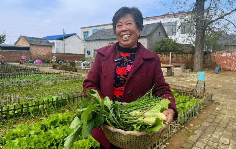 正說著,解月亮摘下一把蒜苗,裝滿菜籃:“今天中午吃撈面條,自己種的菜,吃著就是香!”他的小菜園旁,“德孝園”“初心園”等主題游園相繼建成,小菜園與周邊景觀相映成趣。