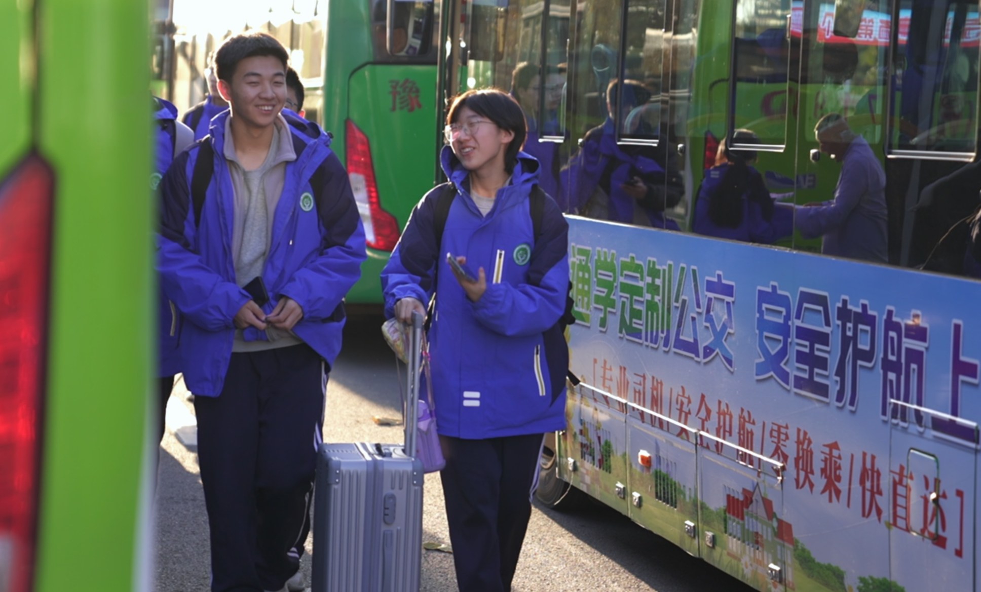 學(xué)生即將乘坐“通學(xué)定制公交”回家
