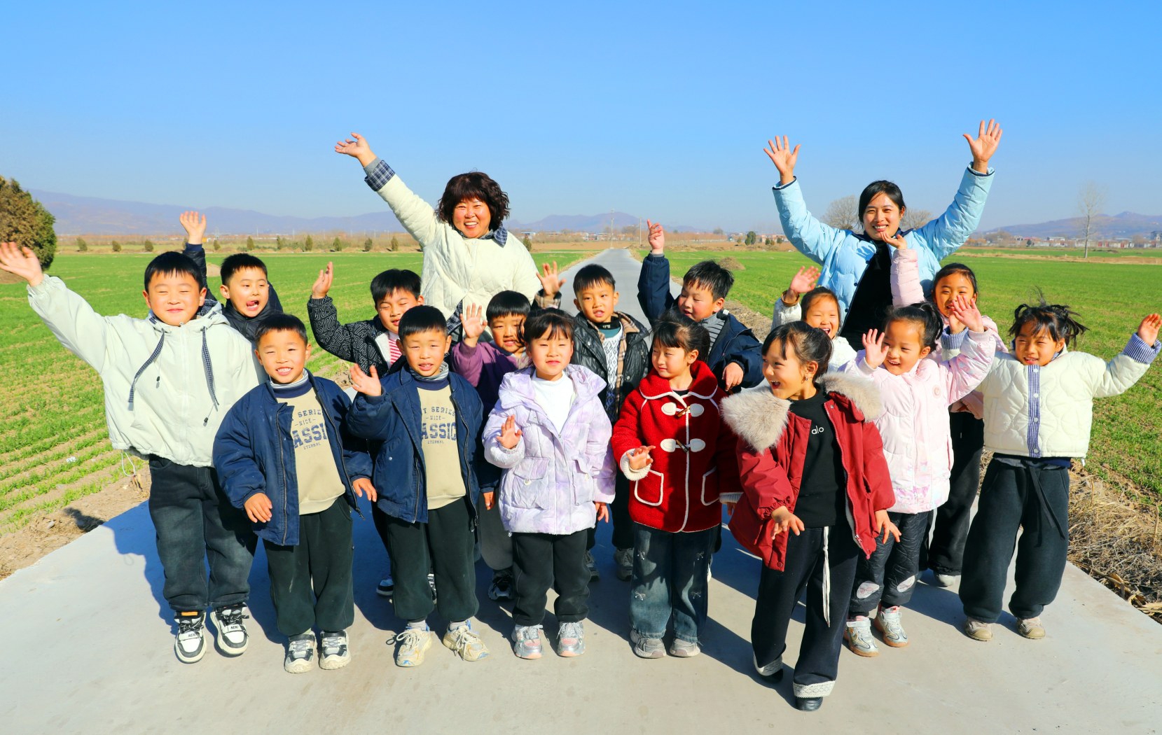 水磨河社區(qū)金貝貝幼兒園的老師帶學(xué)生進(jìn)行戶外活動,大家走在田間小路上樂享美好時光。