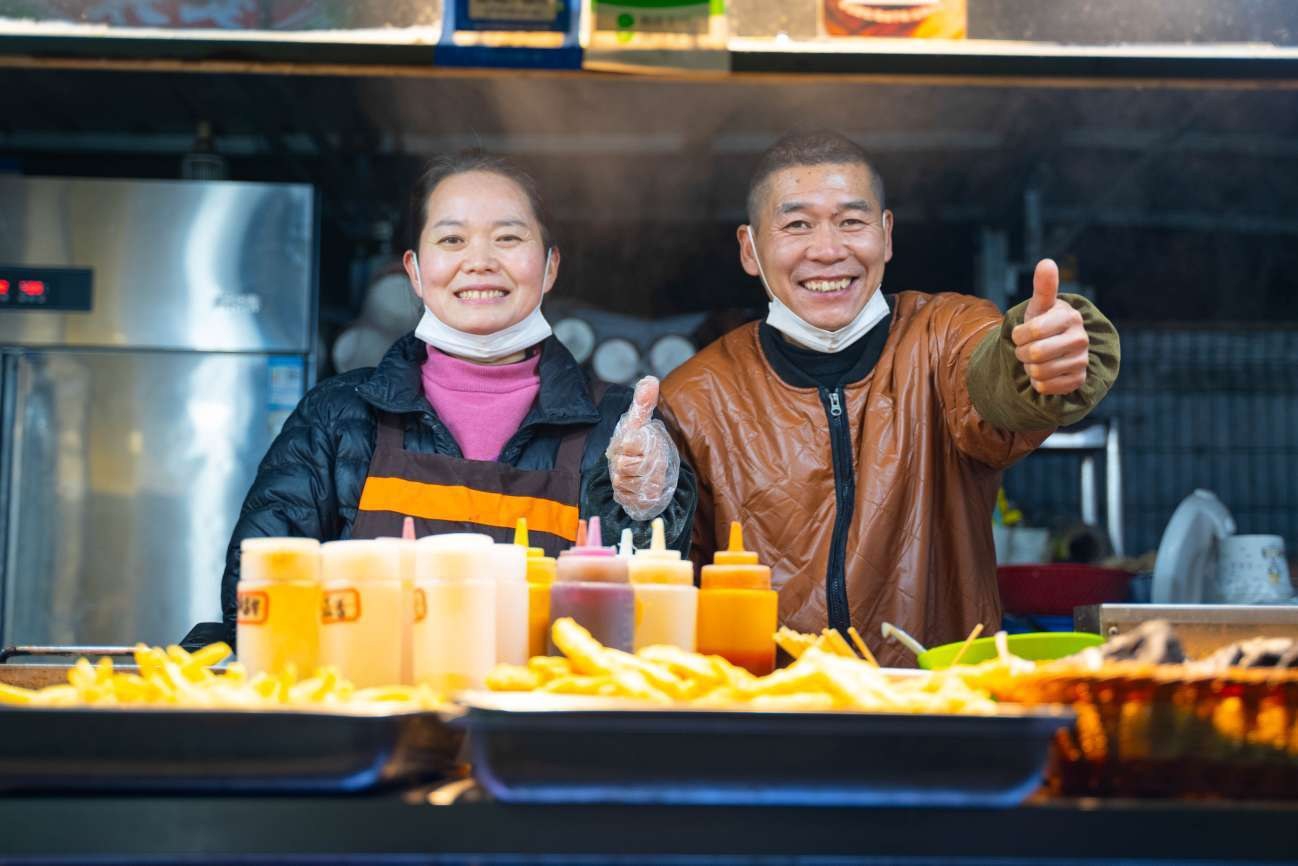 “咱是本地人,守著家就能掙錢!”程大勇翻著焦酥的炸雞笑著說,從露天攤搬進規范攤位,一家人的日子過得踏實又紅火。隔壁3元一杯的冰糖雪梨賣得也很火,攤主朱建國忙個不停:“以前風吹日曬,現在有了固定攤,社區建設的這個市場真好!”