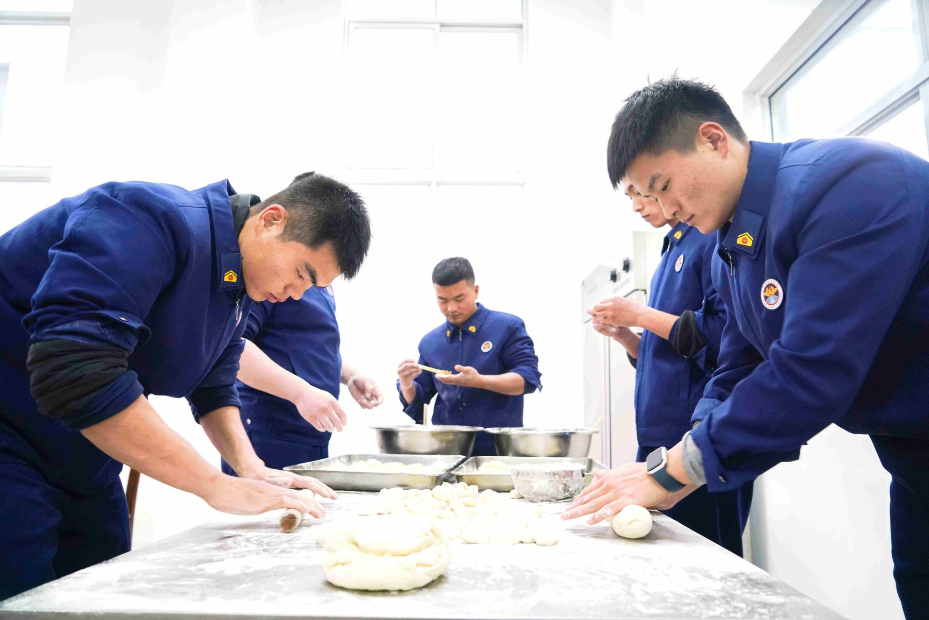 消防員們在包餃子。