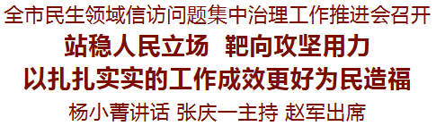 楊小菁指出,民生領域信訪問題直接關系群眾切身利益,關系黨和政府形象,關系社會和諧穩定。要深刻認識做好民生領域信訪問題集中治理的極端重要性,厚植為民情懷,站穩人民立場,盯住重點難點靶向用力、精準施治,切實把政績落在解決人民群眾急難愁盼的具體問題上,堅決維護群眾合法權益和社會大局和諧穩定。