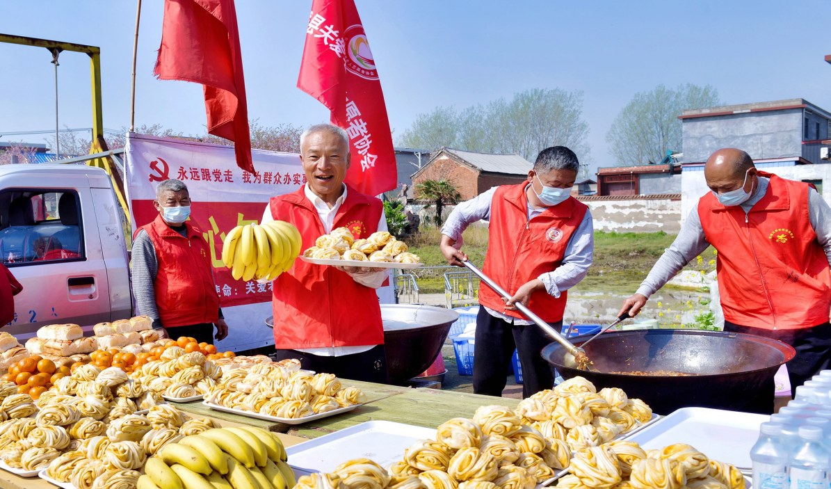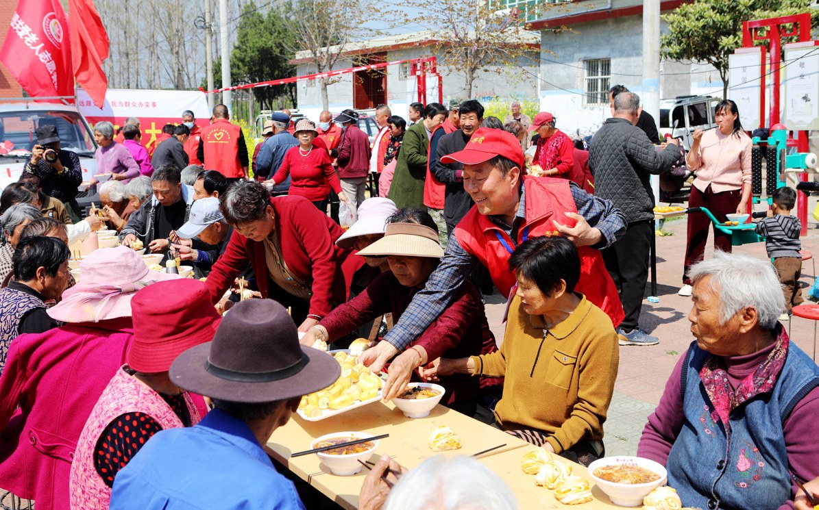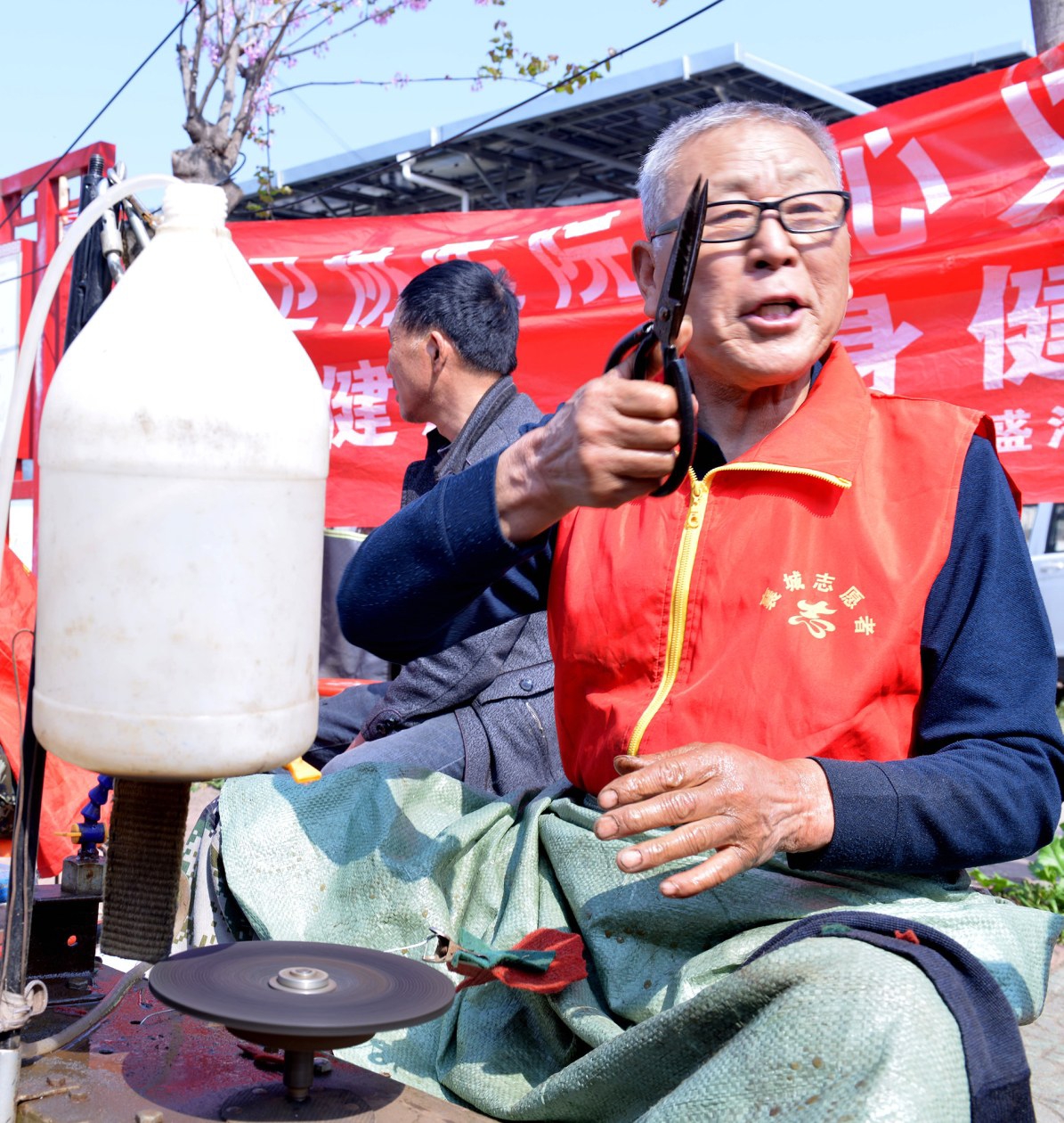 當日9時許,文化廣場上早已暖意融融。接到通知的老人三五成群,步履緩緩匯聚而來,臉上滿是期待。小彩鳳曲劇團的志愿者登臺獻藝,婉轉悠揚的傳統唱腔縈繞耳畔,皆是老人耳熟能詳的經典曲目,每一段唱罷都會引來陣陣掌聲與喝彩;義剪區,3位志愿者凝神細致,為30余名老人修剪發絲,褪去滄桑;磨刀攤前,銹跡斑斑的刀具在巧手下重煥锃亮光澤;義診區,醫生耐心為老人測量血壓,問診把脈,細致講解養生知識,點滴關懷溫暖人心?!皭坌奈绮痛笈褴嚒迸裕辶恢驹刚叻止f作,切肉、洗菜、炸豆腐,忙碌的身影勾勒出最動人的春日圖景。