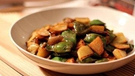 原料:豆角300克,土豆250克,豬肉150克,蔥、姜、五香粉、料酒、生抽、老抽、鹽、油適量。